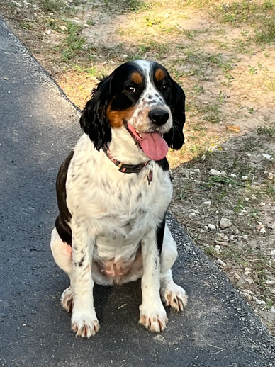 Minnie is a tri-color English Springer Spaniel who was born on Feb. 5th, 2019. She's a water-hound and has found that the top step of the pool is the perfect place to lounge. She loves wrestling with Jessie and has decided that Beagles really know how to bark/howl so she delights in doing her Beagle impression whenever guests (or friends) arrive.